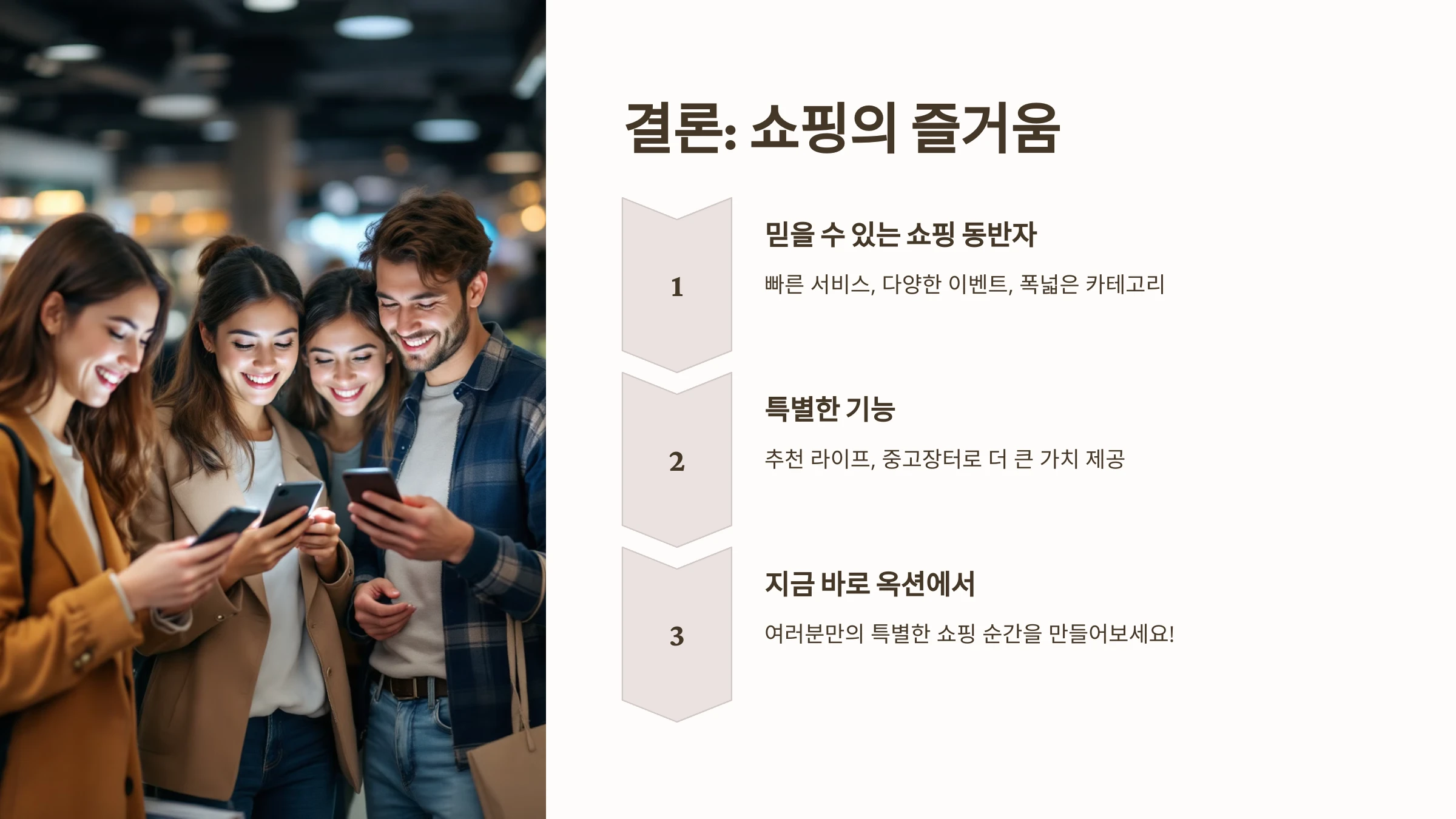 옥션은 다양한 프로모션과 신속한 배송, 개인화된 추천 기능을 통해 이용자에게 편리하고 즐거운 쇼핑 경험을 제공합니다. 스마일배송과 각종 할인 혜택, 그리고 중고장터 같은 부가 서비스는 단순히 물건을 사고파는 경험을 넘어 일상의 가치를 높이는 데 기여합니다.